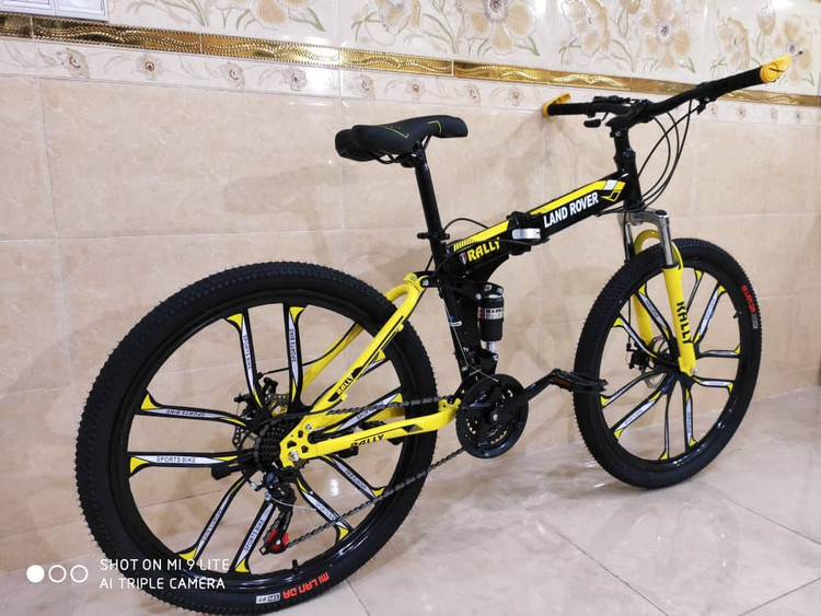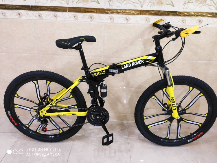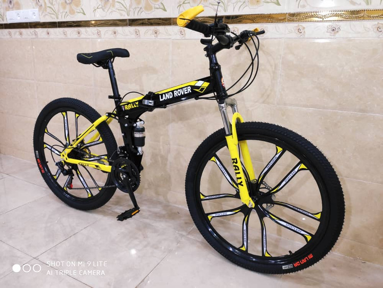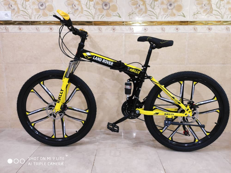 دوچرخه تاشو سایز 26 LAND ROVER رینگ‌ ده پره رنگ زرد
