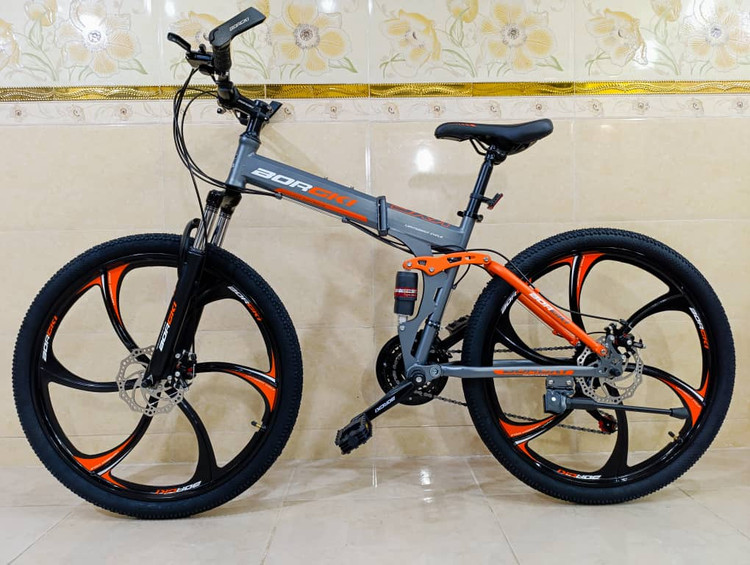دوچرخه تاشو سایز 26 BURGKI رینگ شش پره رنگ نارنجی سفارش امارات