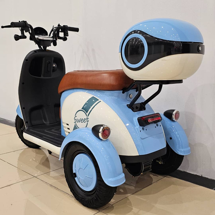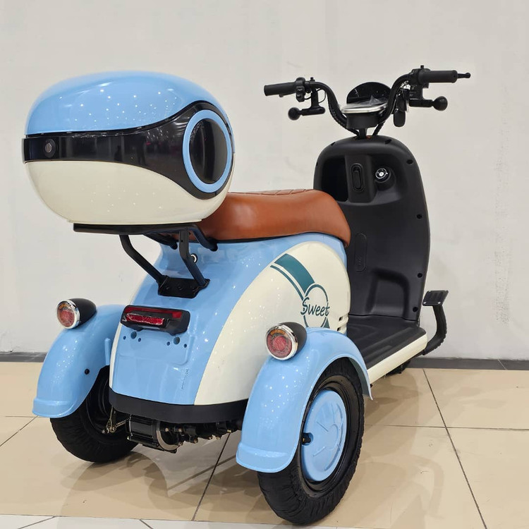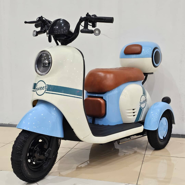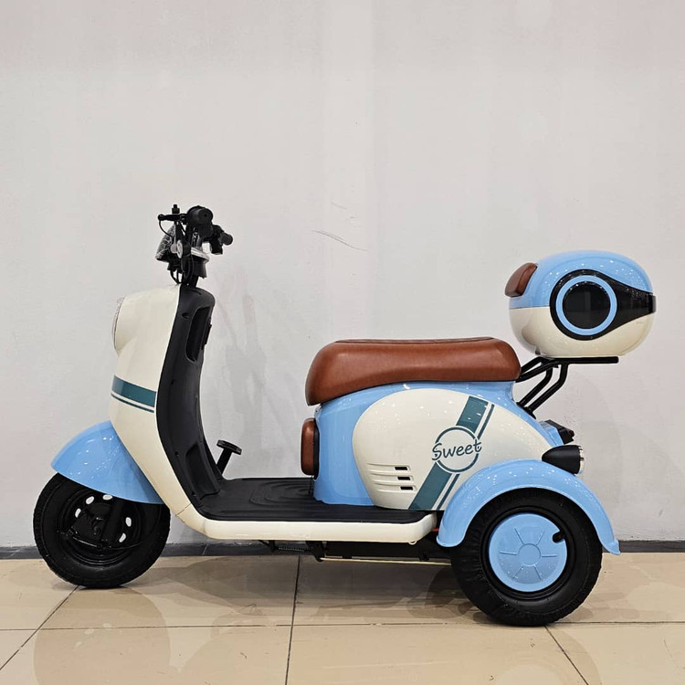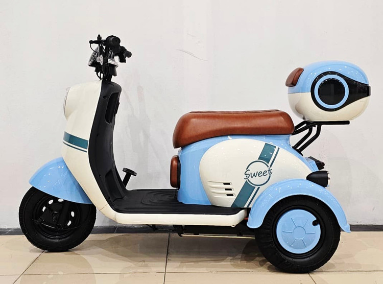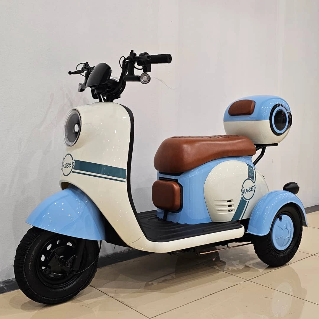 موتور سیکلت سه چرخه برقی بزرگسال VESPA ( سه چرخ برقی ) مدل HELLO رنگ‌ آبی ( موجود )